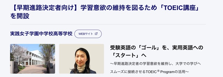 IIBC(国際ビジネスコミュニケーション協会)公式HPに本校の取り組みが紹介されました。 IIBCは、日本でTOEIC Program(Listening & Reading、Speaking & Writing、Bridge等)の運営・実施を行う機関です。 本校の高3で行っている特別講座「TOEIC講座」の取り組みについて取材を受け、その記事がIIBCの公式HPで紹介されました。 ぜひご一読ください! 🌸画像をタップして特集ページにお進みください♪