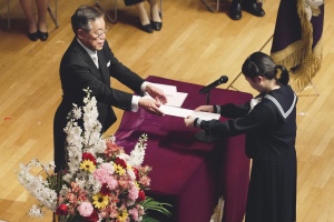 式では学校長より、建学の精神にあるように社会を変え、世界を変えるという気概を持って、本校で多くのことを学んでもらいたいという祝辞がありました。また、新入生代表の宣誓は力強く、本校で6年間学ぶ決意を感じさせるものでした。第2部では合唱部が美しい歌声で校歌、学園歌を披露しました。