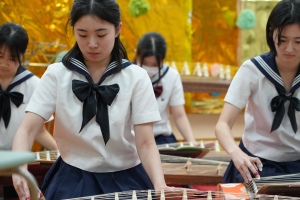 講堂では音楽系のクラブや演劇部だけでなく、筝曲部、被服部や和装着付部が発表を行いました。一方、体育館やグラウンドでは、運動系のクラブが招待試合や校内試合を行ったり、演技披露を行ったりしました。また、普通教室でも様々なクラブがこの日のために創作活動を行い、その成果を披露していました。