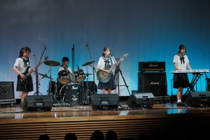 8月31日に桜講堂にて行われたガールズバンドステージコンテスト(主催:ガールズバンドステージコンテスト実行委員会 後援:日本ユネスコ協会)において、高校軽音楽部のバンド、「じ≦ら≦じ」がオーディエンス賞を受賞しました。予選を勝ち抜いた21バンドが日本各地から集まり演奏を披露しました。「じ≦ら≦じ」は、ゆったりとした波のようなグルーブの中に、切ない物語を織り込んだオリジナル曲を演奏し、このバンドをはじめて聴いた多くのお客さんの心を掴むことができました。