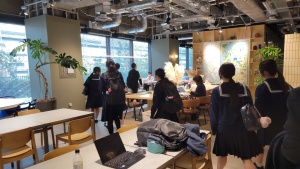 見学の最後には芝浦工業大学に戻り、本校、実践女子学園中学校高等学校、芝浦工業大学附属中学高等学校の生徒が混在するグループを編成し、一日の学びを整理・共有しました。学校の枠を越えた対話を通して、それぞれが感じた気づきや疑問を言語化し、発表することで、学びをより深いものへと昇華させる時間となりました。