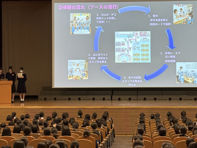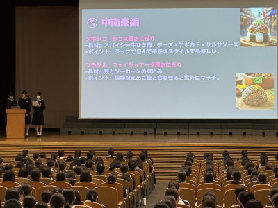 さまざまな企業からあらゆるミッションが与えられます。生徒たちはまず企業のことこま各調べ、自分たちなりのミッション解決に対する新しい提案を企業の目線に立ちながら考えていきます。そして、パワーポイントや発表方法をさまざまに工夫しながら、オリジナル案をプレゼンしていくという流れで行われます。チームごとに分かれてこの企画会議を実施していき、評価の高かった各クラスの数チームが今回の講堂発表会で発表しました。