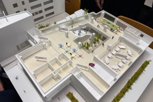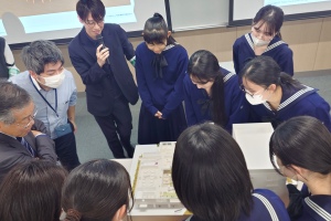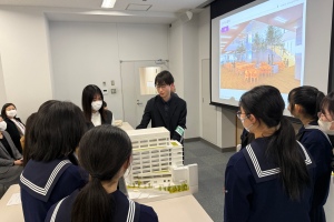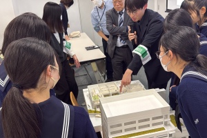後半は、この日のために作っていただいた模型を囲みながら、生徒の質問に答えていただいたり、意見交換をしたりする時間でした。模型が展開され校舎の2階部分が見えると、生徒たちからは様々な質問や意見があがりました。