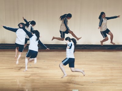 夏明け頃から体育の授業において、ダンスのテーマから音楽、そして振り付けを全部自分たちで考えて創作し発表するものですクラス内での発表の後、選ばれた代表者達が講堂で発表しました!高校1年生も、来年の創作活動に向けて、先輩方の発表を一緒に見学します。各グループのテーマは様々で、「日々の掃除の時間」や「人生の時の流れ」を表現したもの、「料理(酢豚)」の製作過程を表現したものなどなど、個性にあふれた数々の作品が発表されました。