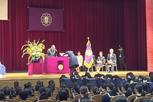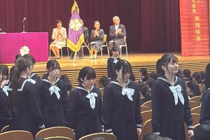 卒業式では卒業生総代生徒から謝辞が述べられました。そこでは、無償の愛をくれた家族、先生、そして周りにいた友達・仲間への感謝の思いが込められていました。6 年間のさまざまな思いが押し寄せて言葉に詰まる場面もあり、聞いていた卒業生も涙を流していました。最後には卒業生から「告別の歌」、在校生からは「送別の歌」が贈られ、卒業式を終えました。