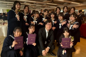 今年の高校 3 年生は、中学 1 年生になる年にCOVID‐19の流行による緊急事態宣言が発令されたため、入学式が 4 月ではなく 6 月になりました。例年通りの式典も開催できなかったため「入学の日」という形式での初登校となりました。入学後も分散登校が続き、あらゆる行事が中止になりました。その中でも逆境に負けず、工夫しながらあらゆる活動や経験を重ね、「卒業の日」を迎えた高校3年生はとても立派に成長していました。団結して行事を作り上げる力、新しいことに挑戦する力があり、パワフルなすばらしい力をもつ学年になったと感じています。