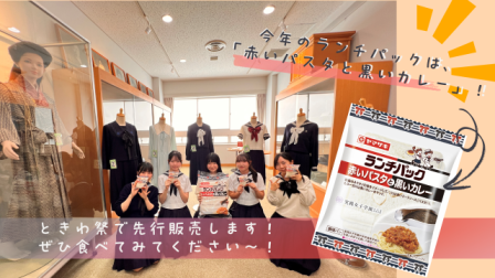 今年のランチパックは制服のリボンの色(中学生が赤、高校生が黒)をもとに、「赤いパスタと黒いカレー」に決まりました!