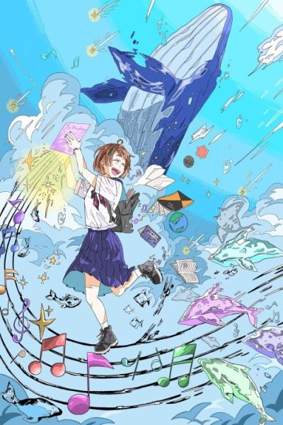 A: クジラです。クジラは海の中で最も大きな音を奏でると聞いたので、実践の生徒全員で紡ぎ出すシンフォニーが、広く、大きく響きわたるようにという願いを込めて描きました。